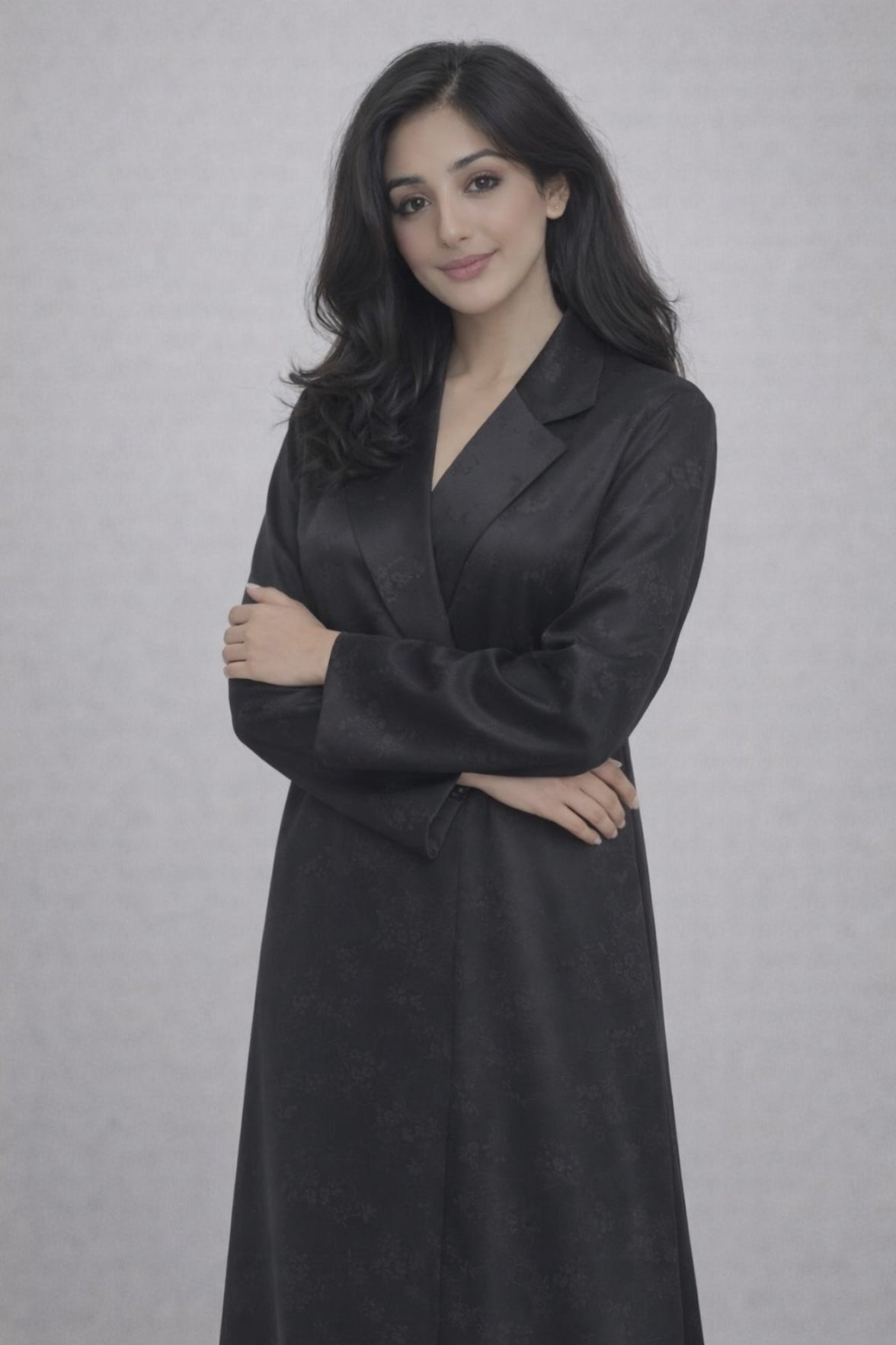 عباية فاخرة تدمج بين أناقة الستايل العربي وجمال القماش بالنقشة الكورية، بتصميم بلايزر، مناسبة للعيد والمناسبات الخاصة